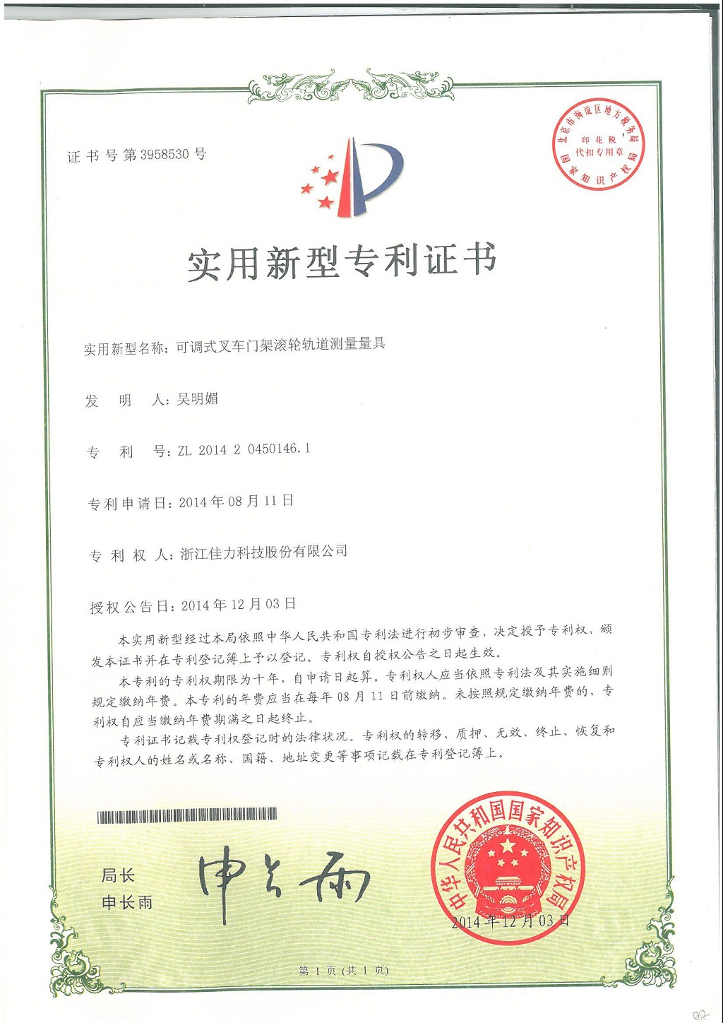 技術(shù)發(fā)明專利證書