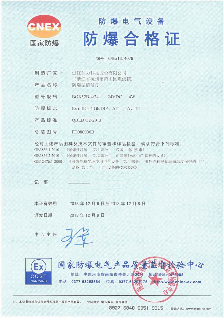 防爆證書>>詳細信息