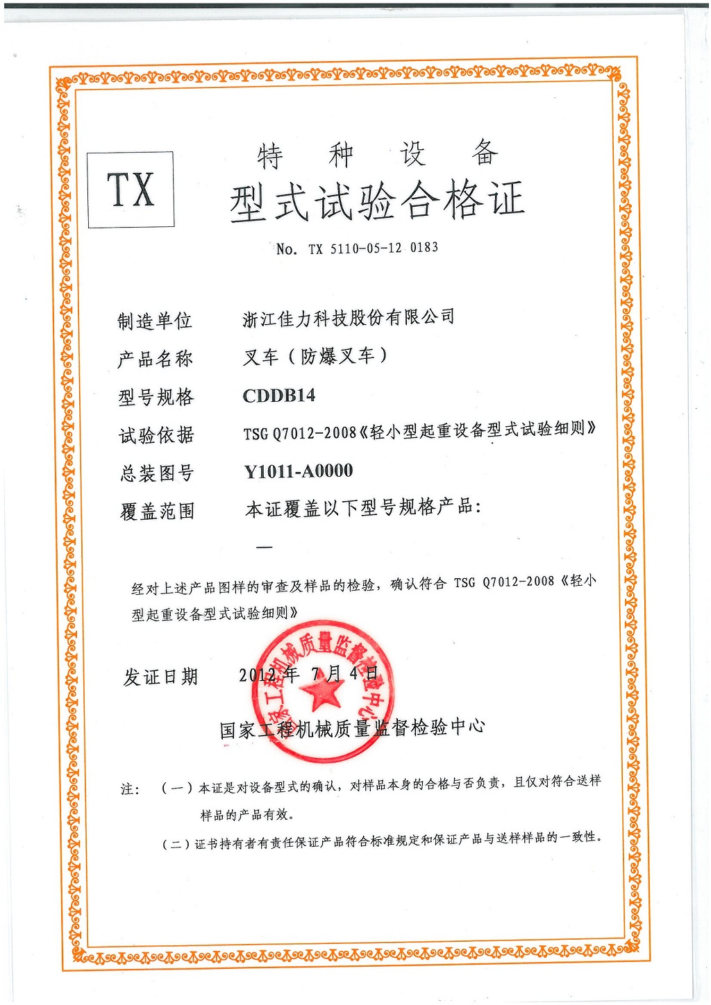型式試驗合格證>>詳細信息