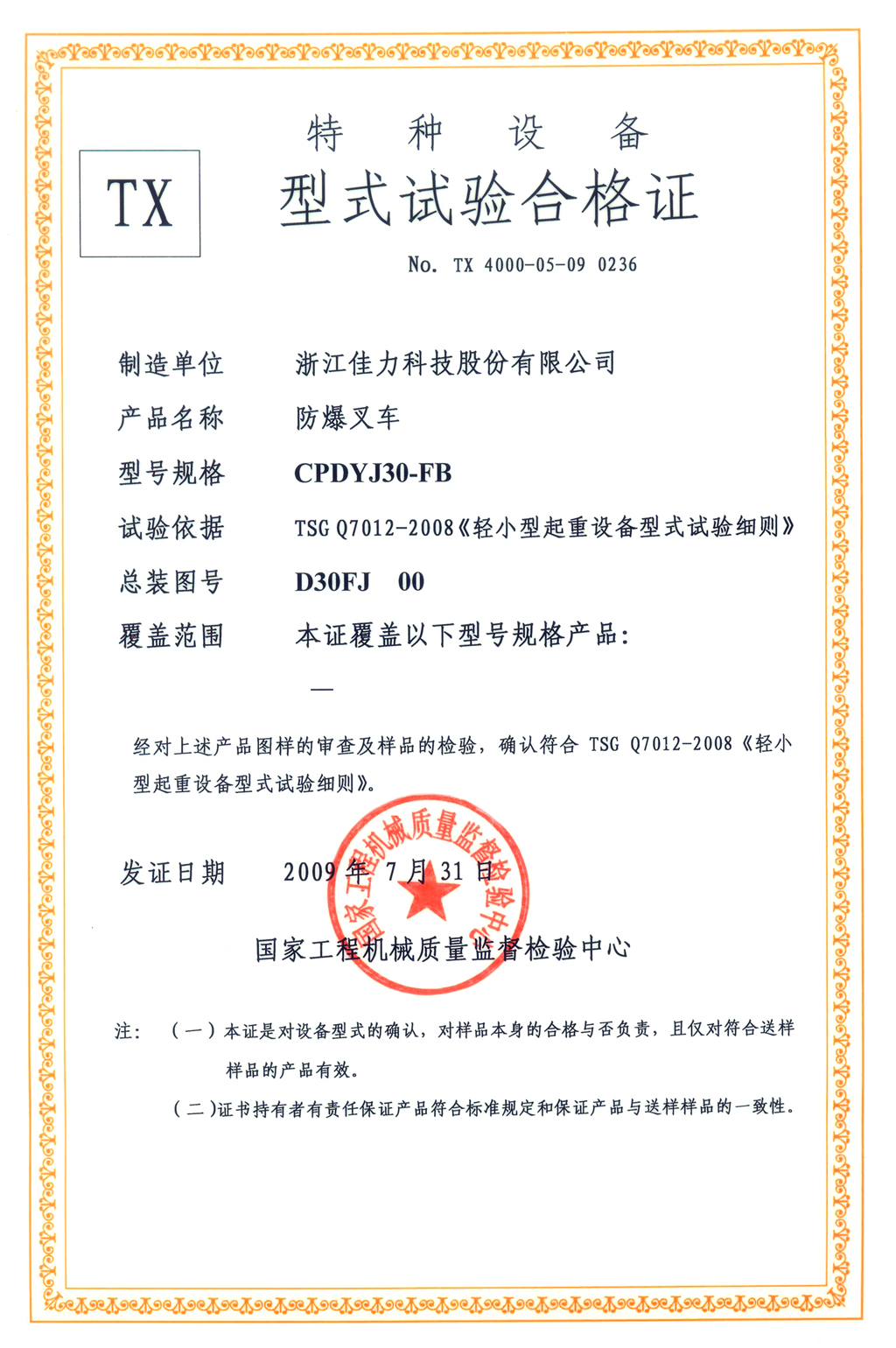 型式試驗合格證>>詳細信息