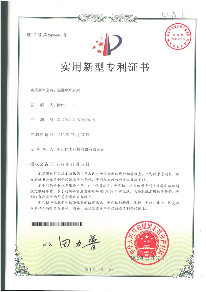 實用新型專利證書